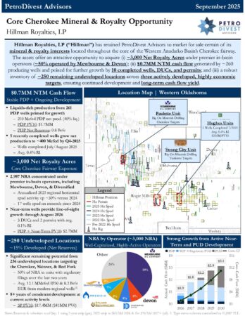 Working interests and mineral/royalty opportunities in the middle-market upstream oil and gas sector.